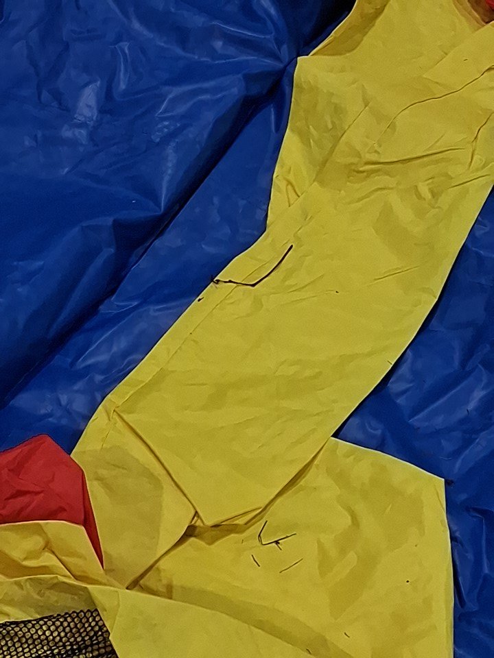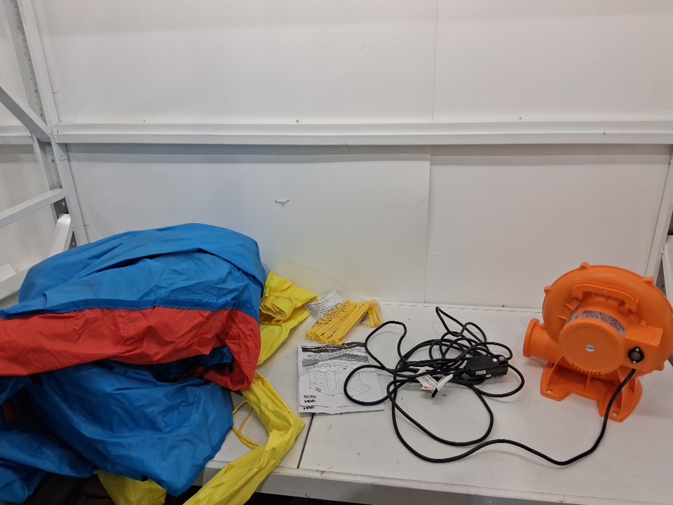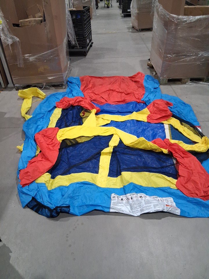 Bouncer has visible dirt discoloration on bottom, and has loose grass debris inside Please note this item is unable to be tested by our staff due to it's nature of operation/function