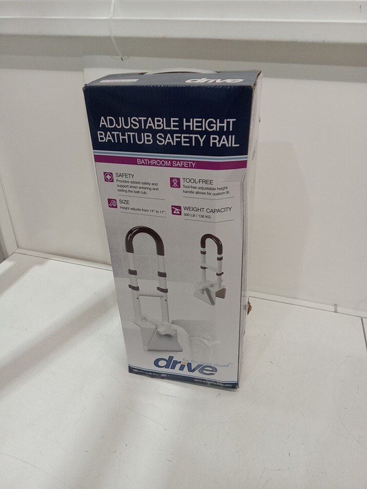 DRIVE MEDICAL ADJUSTABLE HEIGHT & WIDTH BATHTUB SAFETY RAIL - adjustable height from 14.5"-17"x3"-7" - 300lbs capacity - WHITE (MODEL: RTL12036-ADJ)