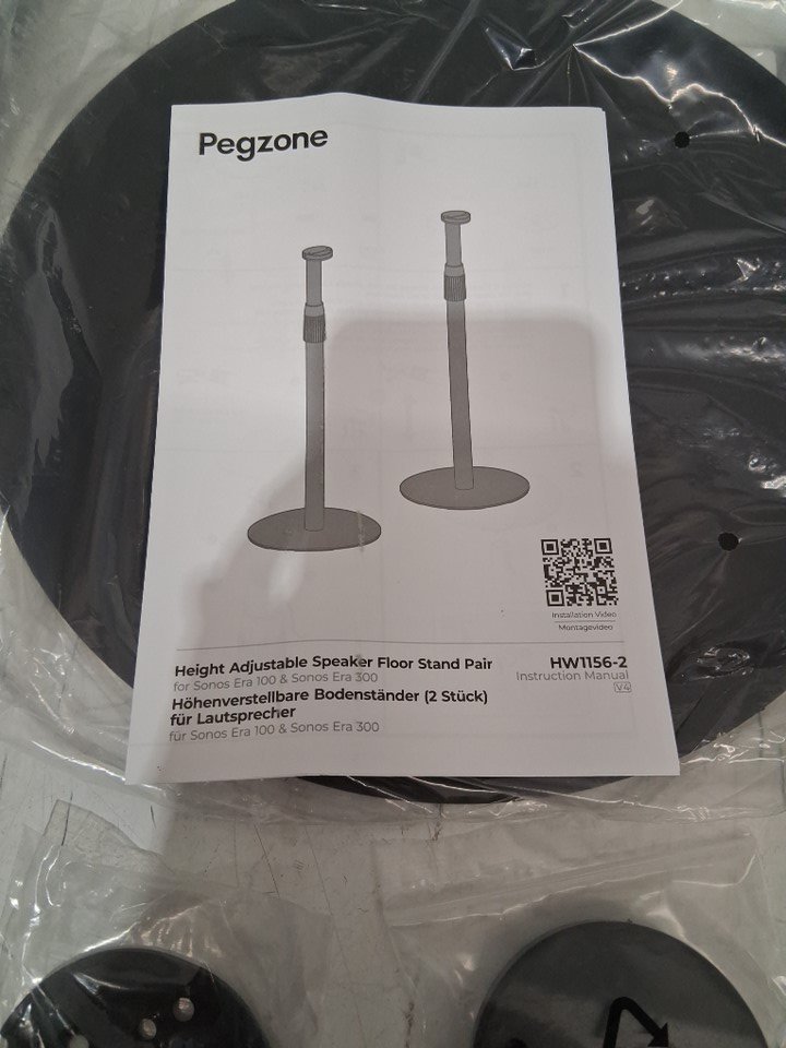 2pk PEGZONE adjustable height speaker stands with cable management - Sonos Era 300 and 100 - 26.9" to 42.6" - Black (Model: BW1156bk-2)
