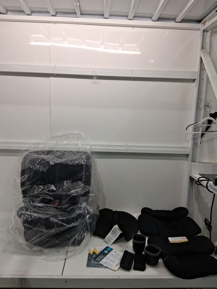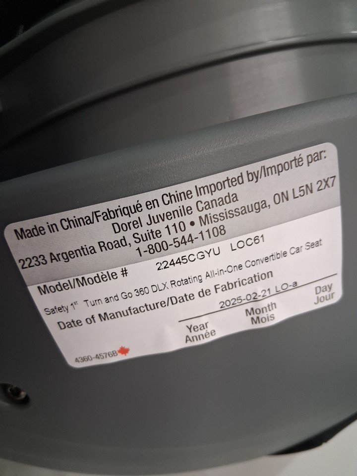 Manufacture date: 2025-02-21 very feint and Slight stain on headrest of the baby seat