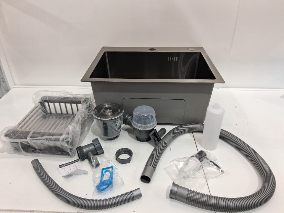Ganggend stainless steel Kitchen single bowl Sink with draining basket - 22" x 18" x 9" - BLACK