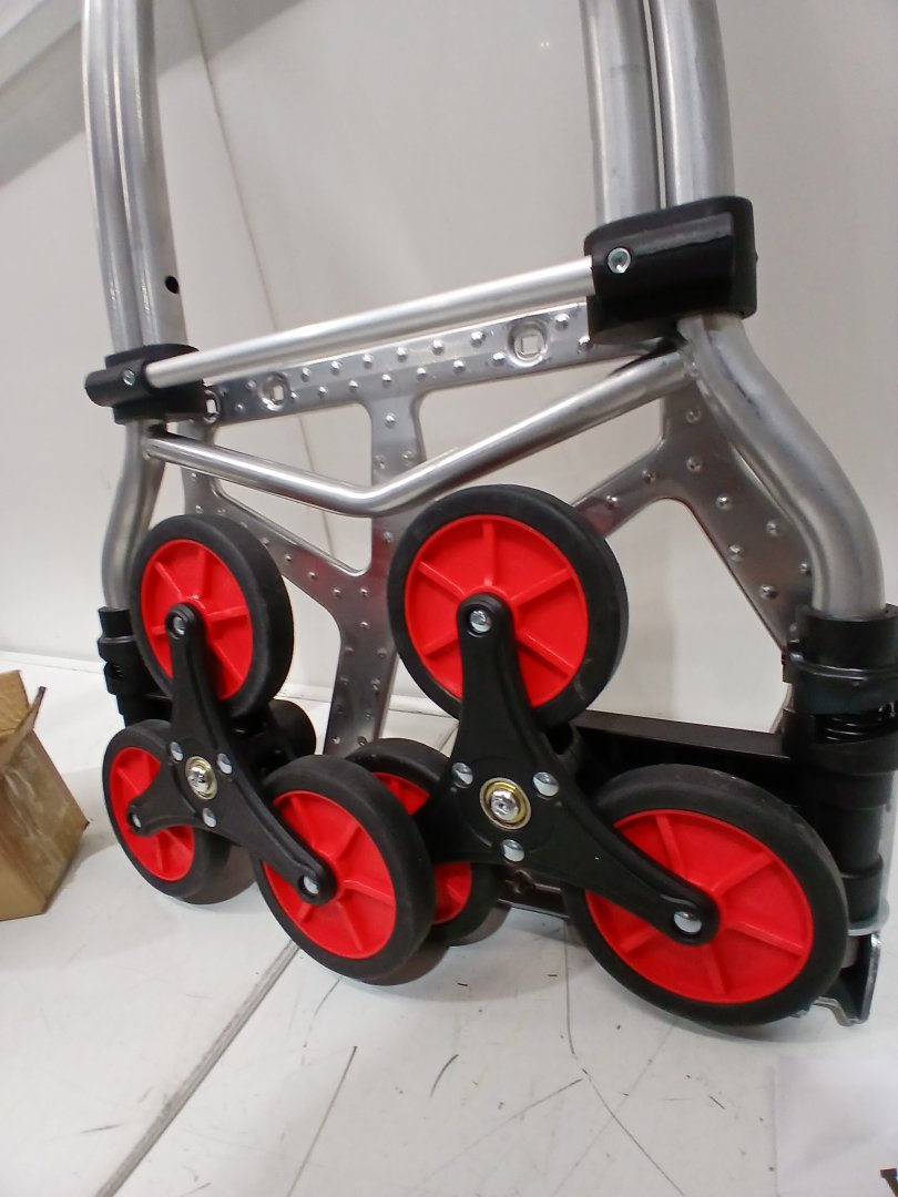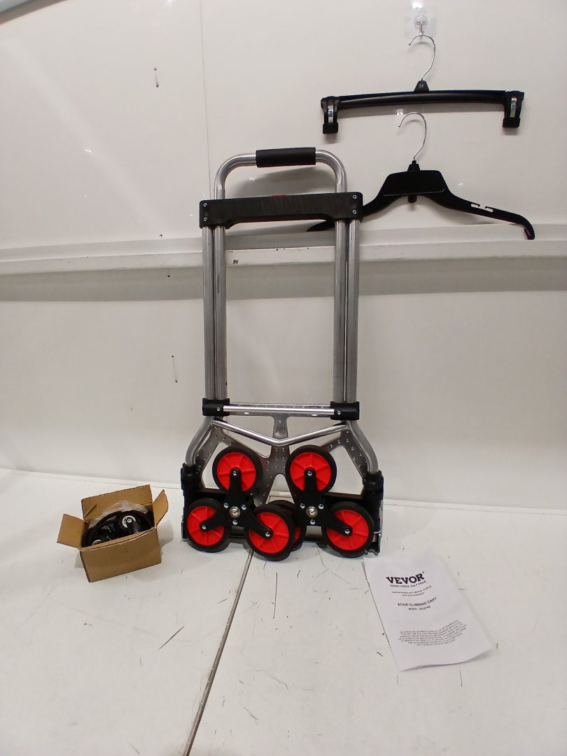 VEVOR heavy duty foldable hand truck/dolly stair climbing cart - 260lbs - silver/red (model: 2022fkb)