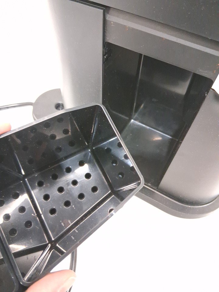 item has lots of coffee splatters on the exterior and light coffee odour, the item does not appear to have an damage and was tested for power