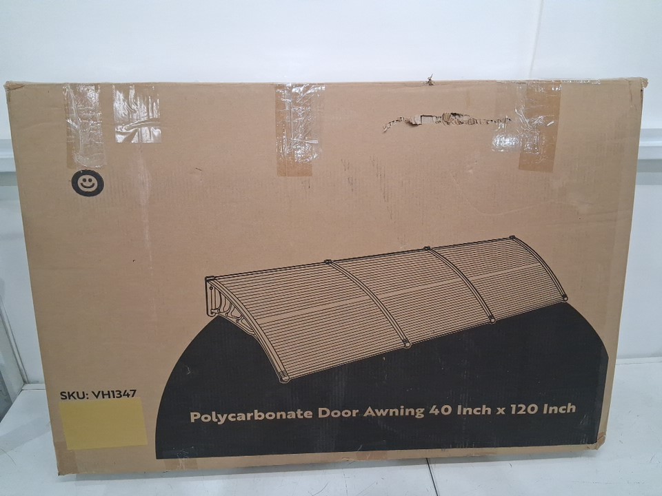 VIVOHOME Arch Awning Polycarbonate Door and Window Canopy with Support Brackets - 40" W x 120" L - Brown/Black (Model: VH1347)