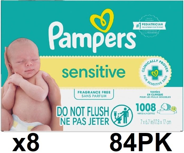 8 (84PK) pampers baby sensitive FRAGRANCE-FREE BABY WIPES - 672 WIPES TOTAL