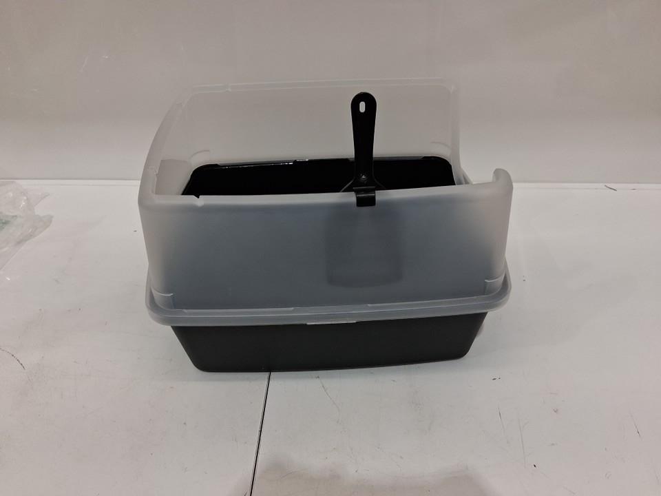 IRIS USA Large Open Top Cat Litter Box Pan with Scoop - 19" x 15" x 11.8" - Black (Model: 301754)
