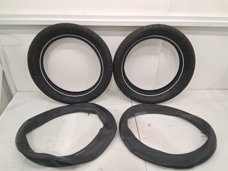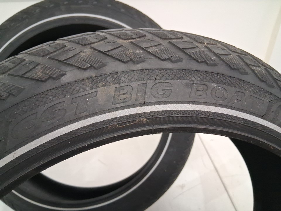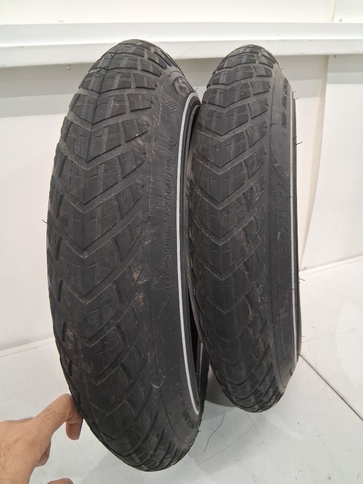 Both outer tires show minor dirt residue indicating prior short-term use. (See photos)