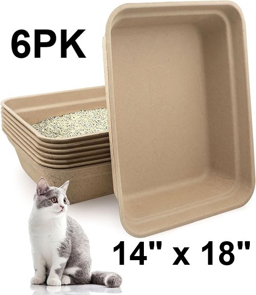 6PK AMAZON BASICS CAT DISPOSABLE LITTER BOX FOR TRAVEL/HOME - 14" X 18"