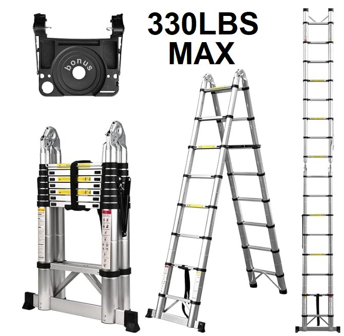 Soctone Multifunction Folding Ladder - 2.5M+2.5M, 330LB - silver/black (model:KT60-25)