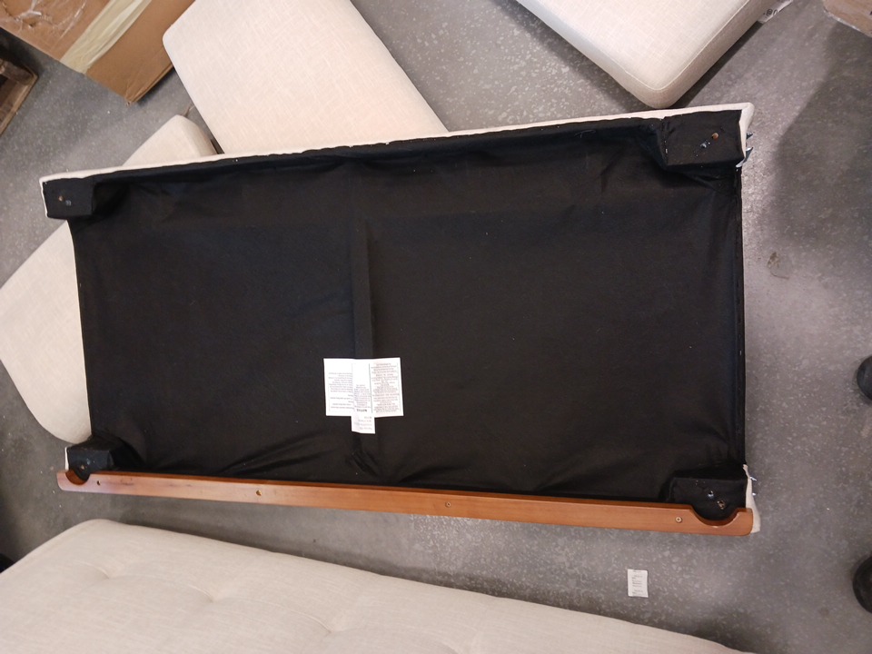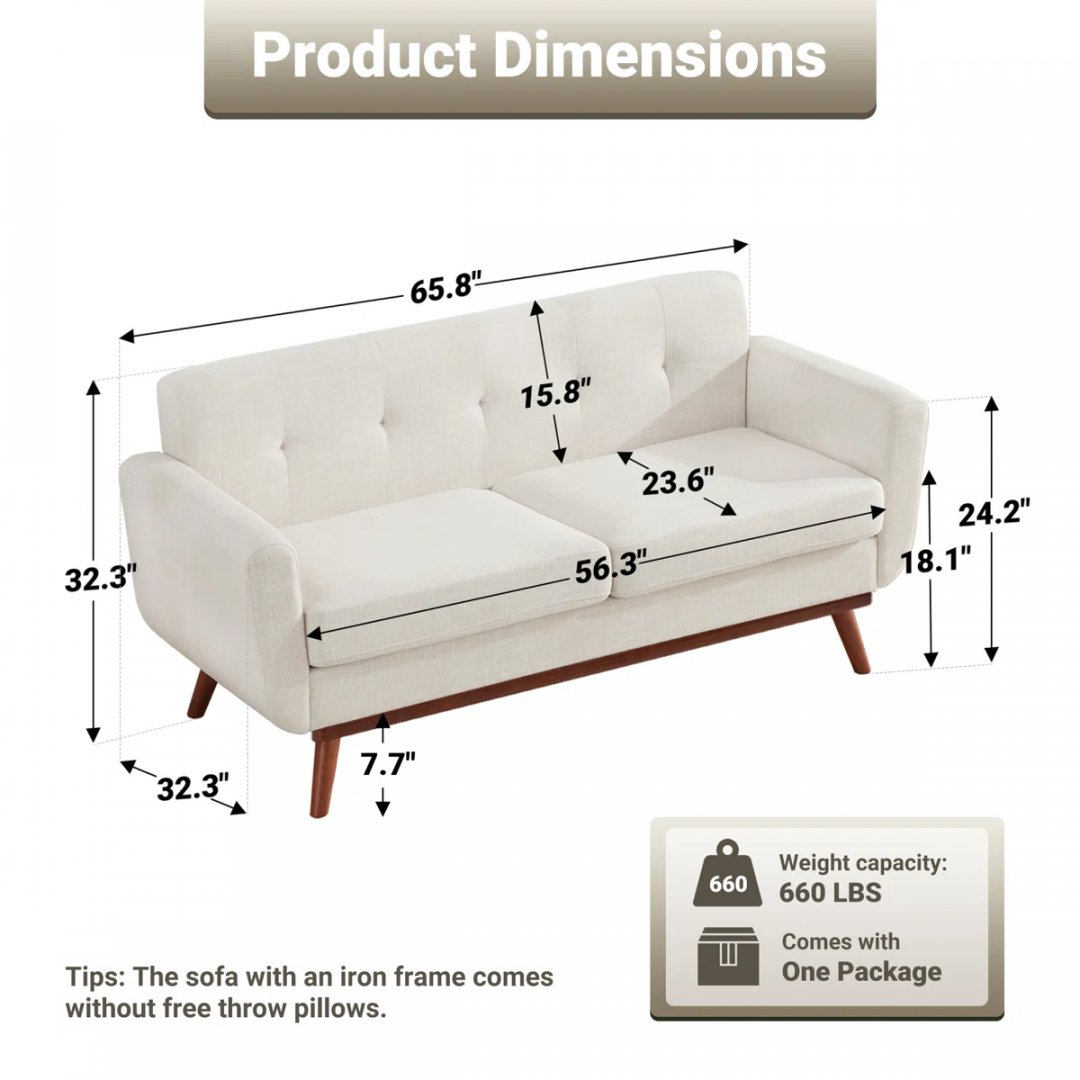 Wade Logan Carmencita Square Arm Loveseat with Button-Tufted Linen-Blend Upholstery, High-Density Foam Cushions, Solid Wood Frame with Tapered Legs and Removable Back and Seat Cushions - Beige