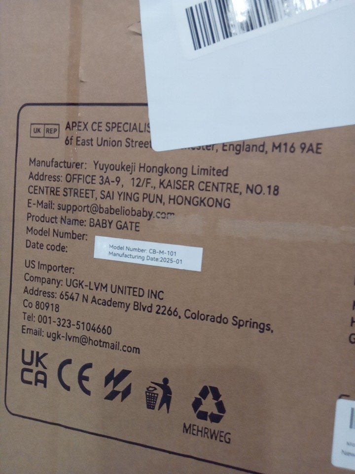 BABELIO extra-wide pressure mounted baby pet safety barrier gate - 29" to 55" wide - white (model: cb-m-101)