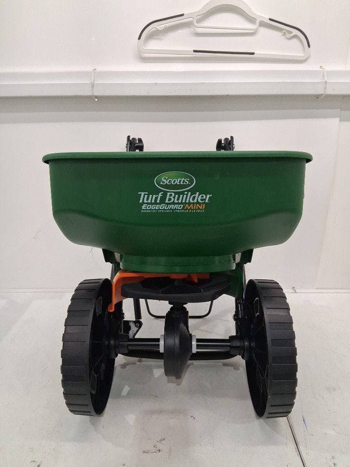 scotts turf builder edgeguard mini broadcast spreader - 5000sqft - green (model: 75121)