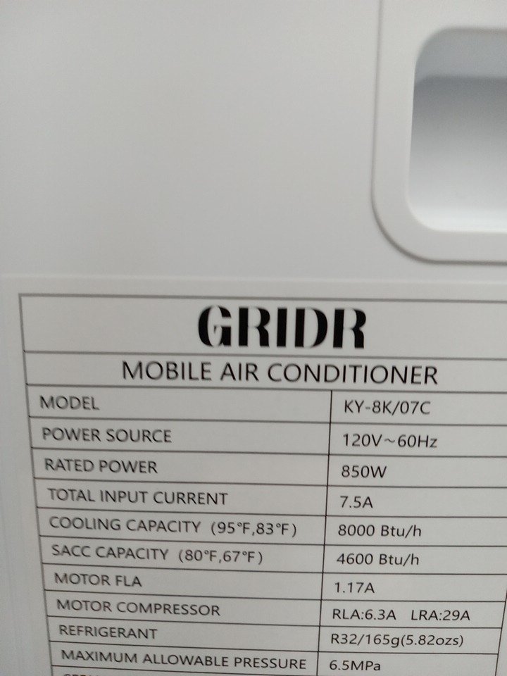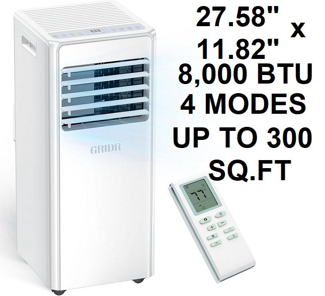 GRIDR Portable Air Conditioners - 8,000 BTU AC Unit for Bedroom with 4 Modes Cooling/Dehumidifier/Fan/Sleep - Up to 300 sq.ft- 27.48" x 11.82" white (model: ky-8k/07c)