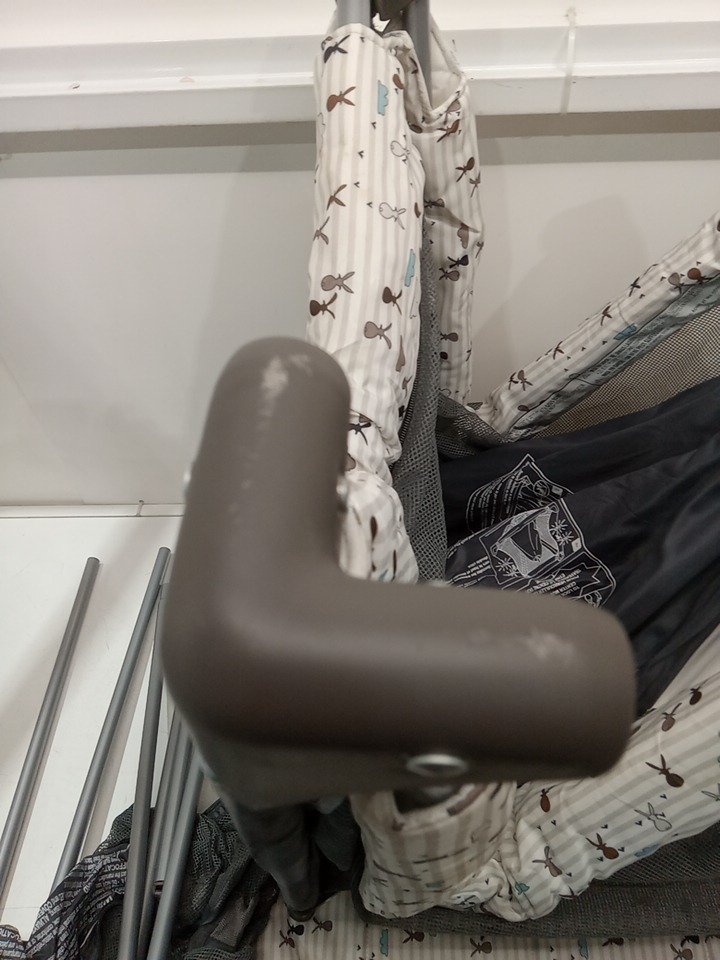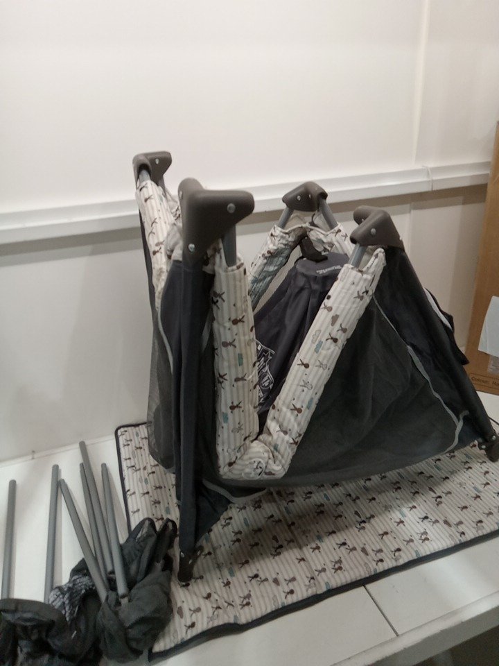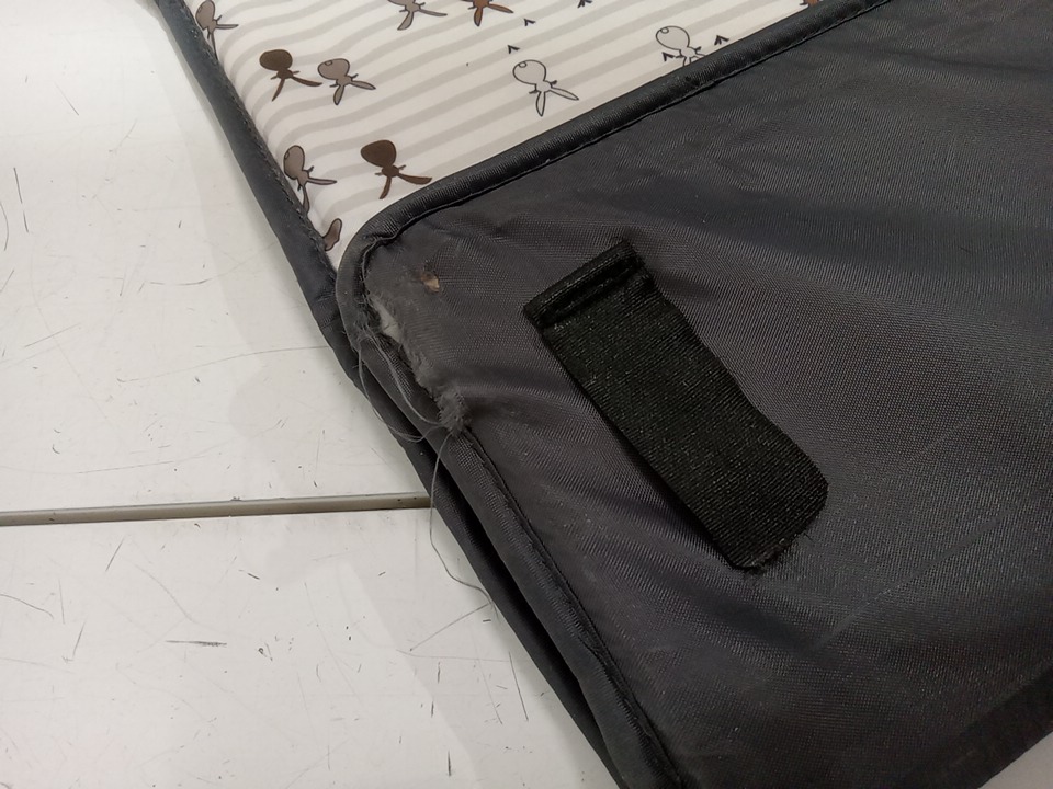 The one corner of the insertable mat is fraying from use. Missing the travel bag.