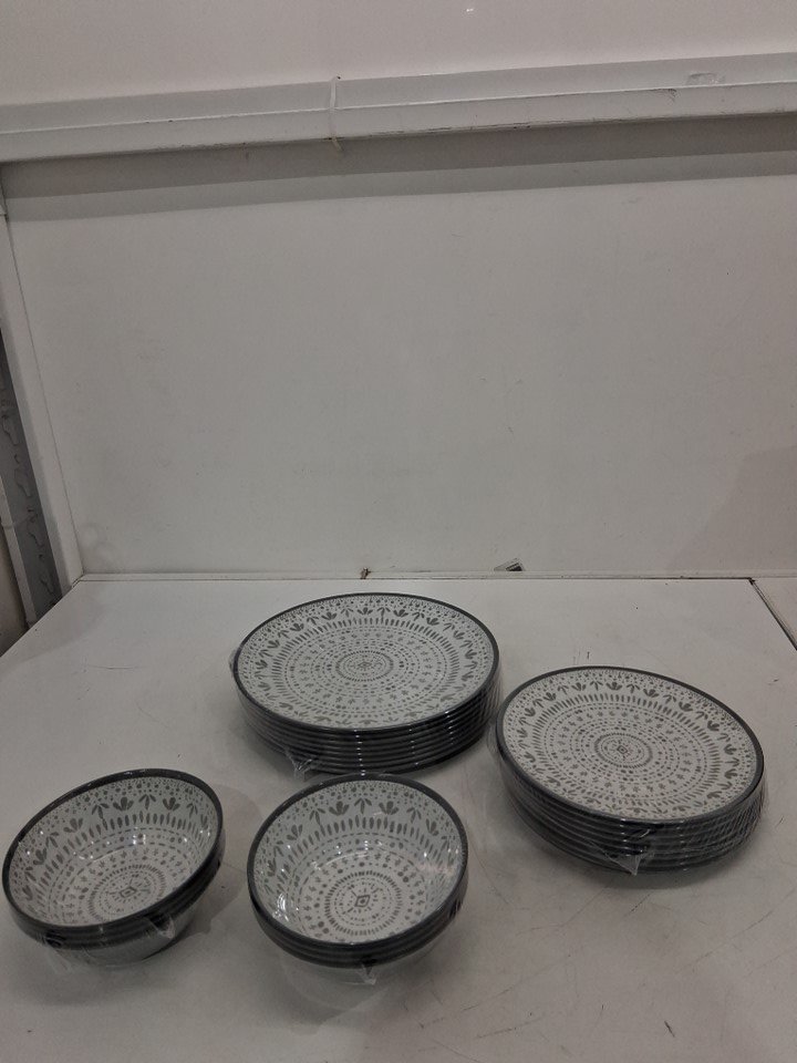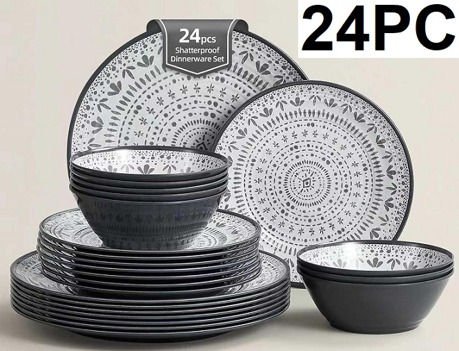 24PC Joviton HOME Bohemia Melamine Plastic Dinnerware Set - GREY