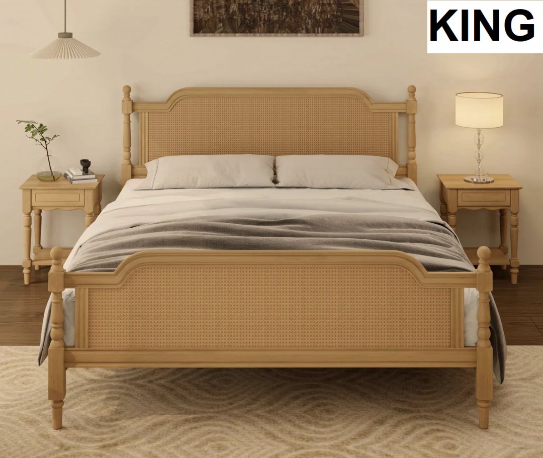 Chikezie Solid Wood Bohemian Style Wicker Bed Frame with Headboard - KING - ANTIQUE WALNUT