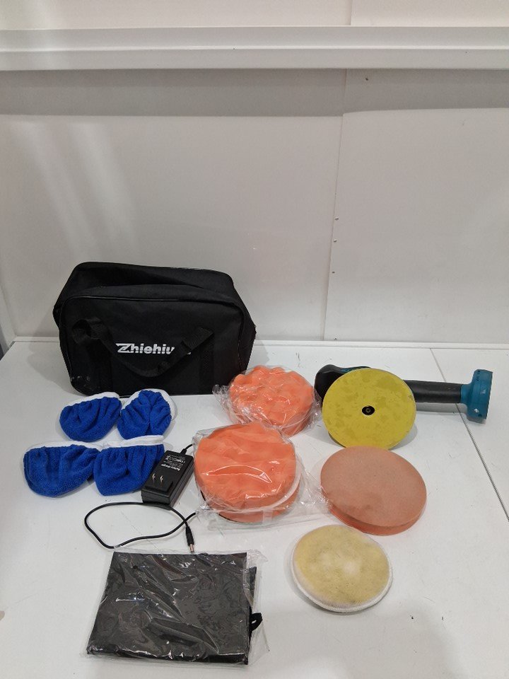 item is missing at least one, maybe 2, of the buffer wheels, the item was tested for power but does not come with batteries (see photos)