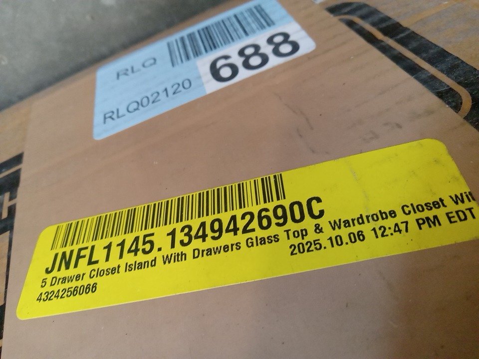 rebrilliant 5 Drawer Closet Island With Glass Top & Wardrobe Closet - 38" x 30.7" - black (model:JFLDG2514)