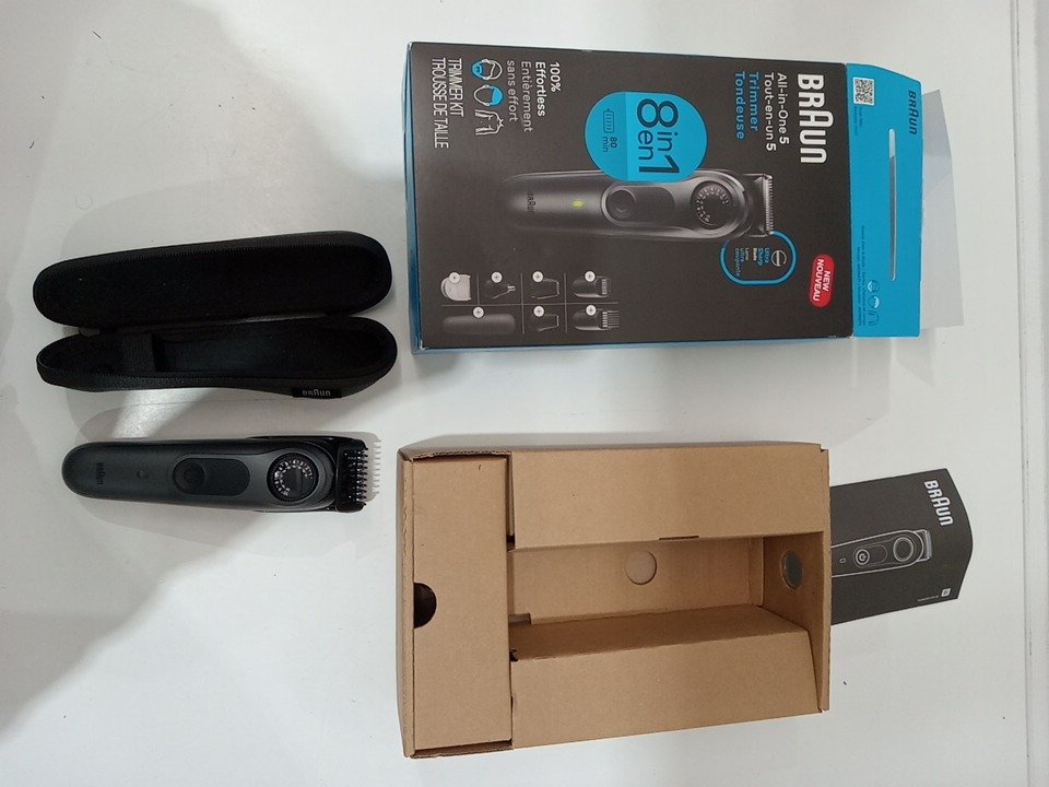 braun all-in-one style kit series 5, 8-in-1 trimmer for men - includes beard trimmer, body trimmer, hair clippers + more - 40 length settings, battery powered cordless - black (model: 5517)