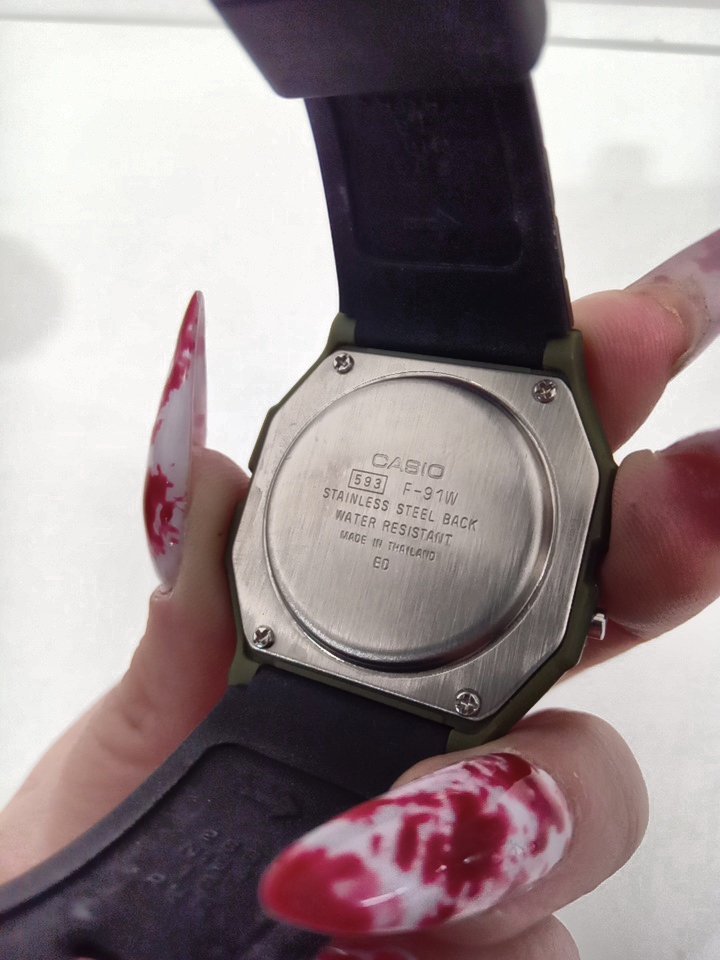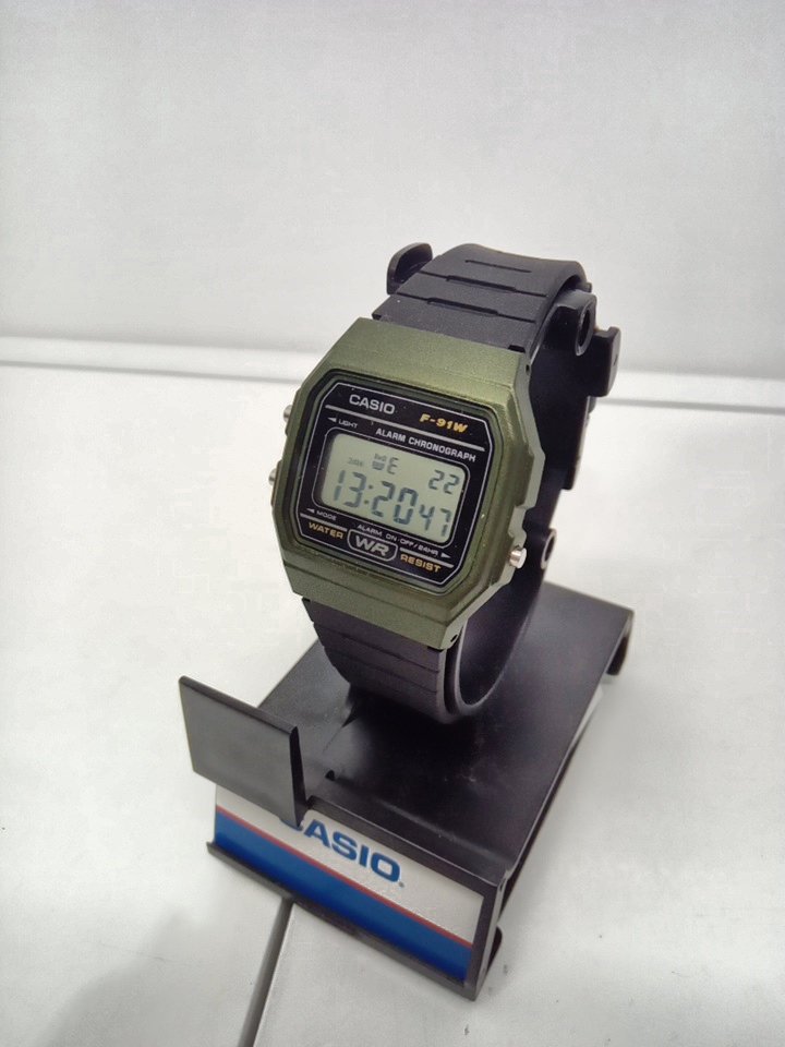 MEN'S CASIO VINTAGE CASUAL WATCH WITH RESIN STRAP - 35.5MM - BLACK/GREEN (MODEL:F-91WM-3ACF)