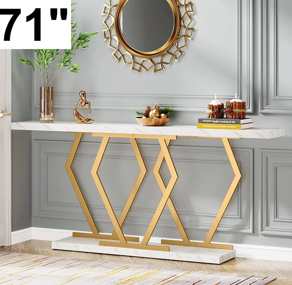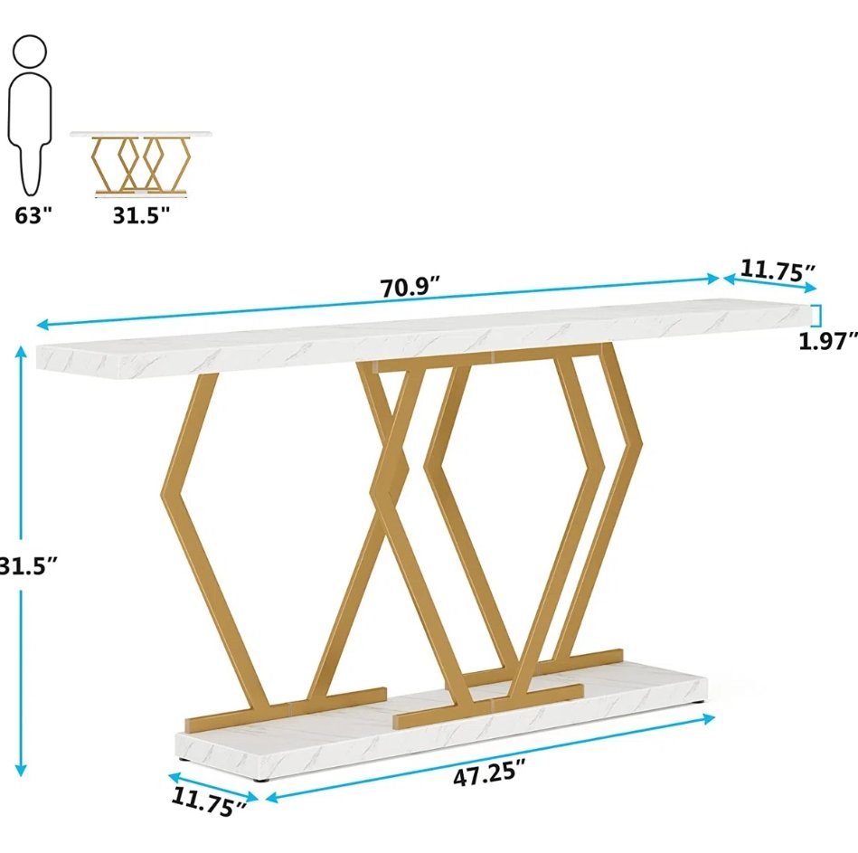 bluebell faux marble console table with metal legs - 71" x 12" x 31" - white/gold