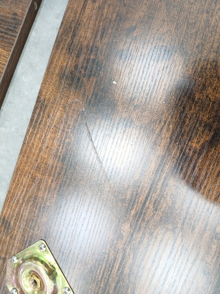The underside of the top has a scratch and some of the boards have damage to its corners