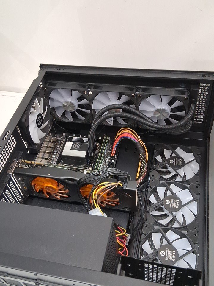 Item has minor dust build-up near the fans on the case exterior from previous gentle use, see photos.