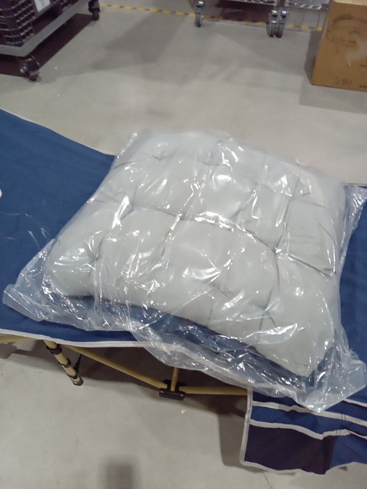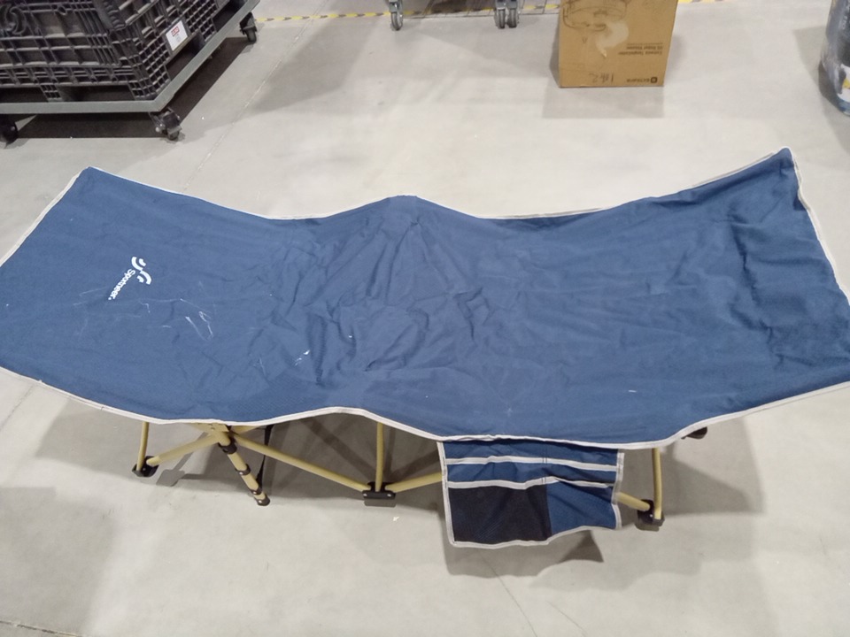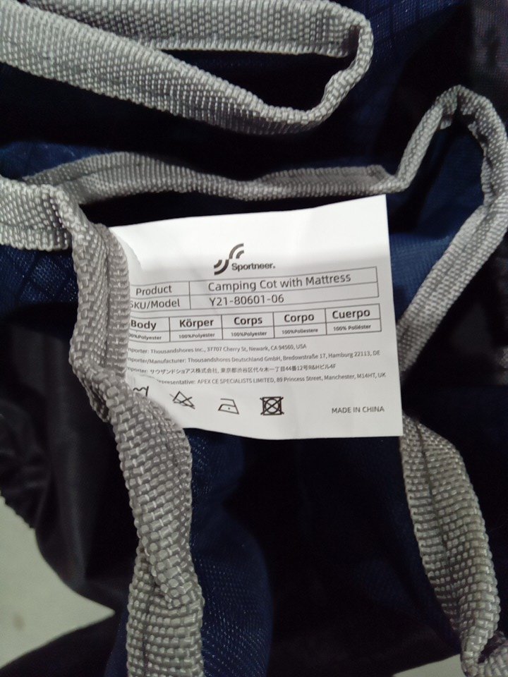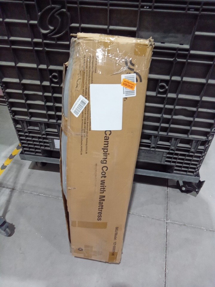The cot itself has been previously used and there are marks on it from that. The cot mattress is still in the bag it came in and is brand new There is no storage bag for the cot included Box is very distressed