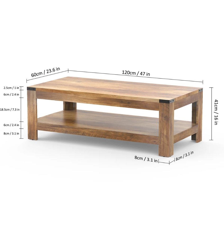 milwood pines 2 tier coffee table - 47" x 24" x 16" - rustic oak - (model: gmt-003)