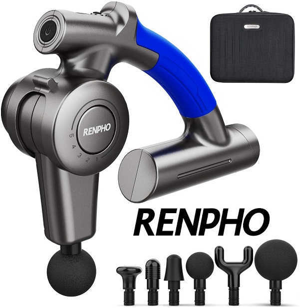 RENPHO Massage Gun with Adjustable Arm, Muscle Back Massager Handheld, Portable Case Percussion Massager for Athletes Sore Muscle and Stiffness Back Pain Relief - (MODEL: RF-GM169)