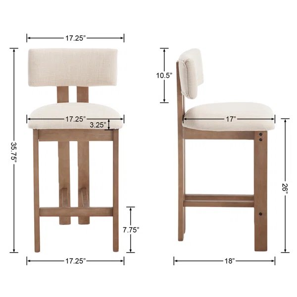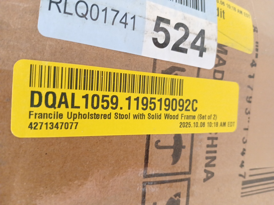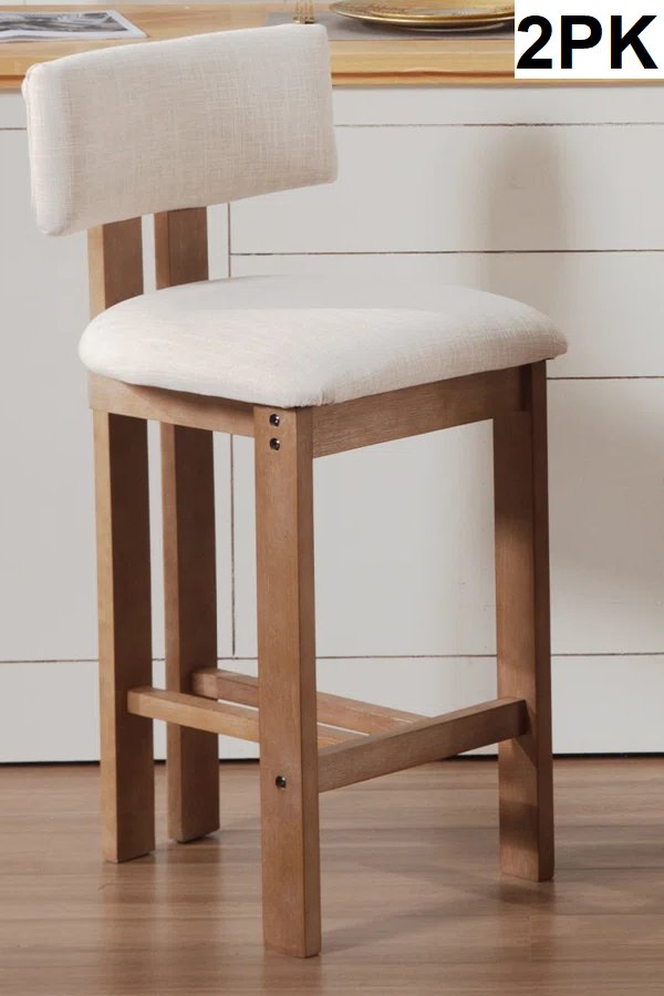 2PK Francile Upholstered Stools with Solid Wood Frame - 35" x 17" - White/Brown