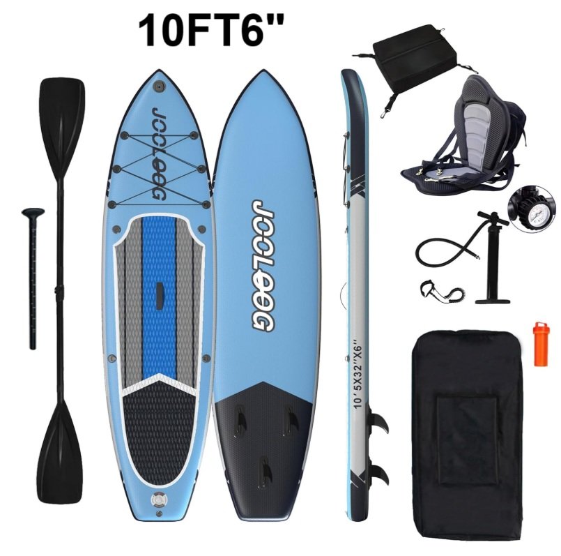 JOOLOOG Inflatable Paddle Board With SUP Accessories And Seat - 10FT 5" x 32" x 6" - Blue/Black