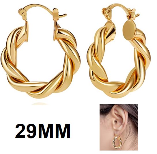 LILIE AND WHITE 14K GOLD PLATED TWISTED CHUNKY HOOP EARRINGS - 29MM