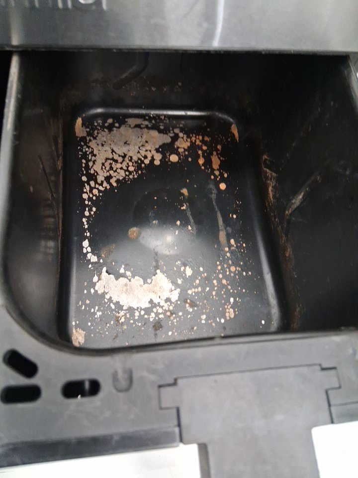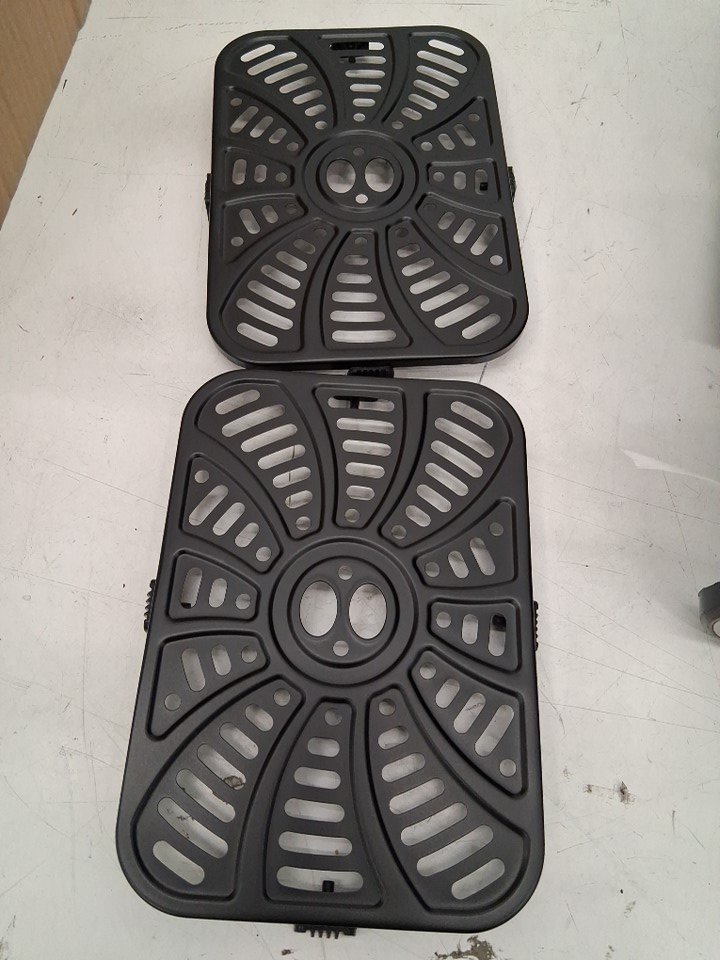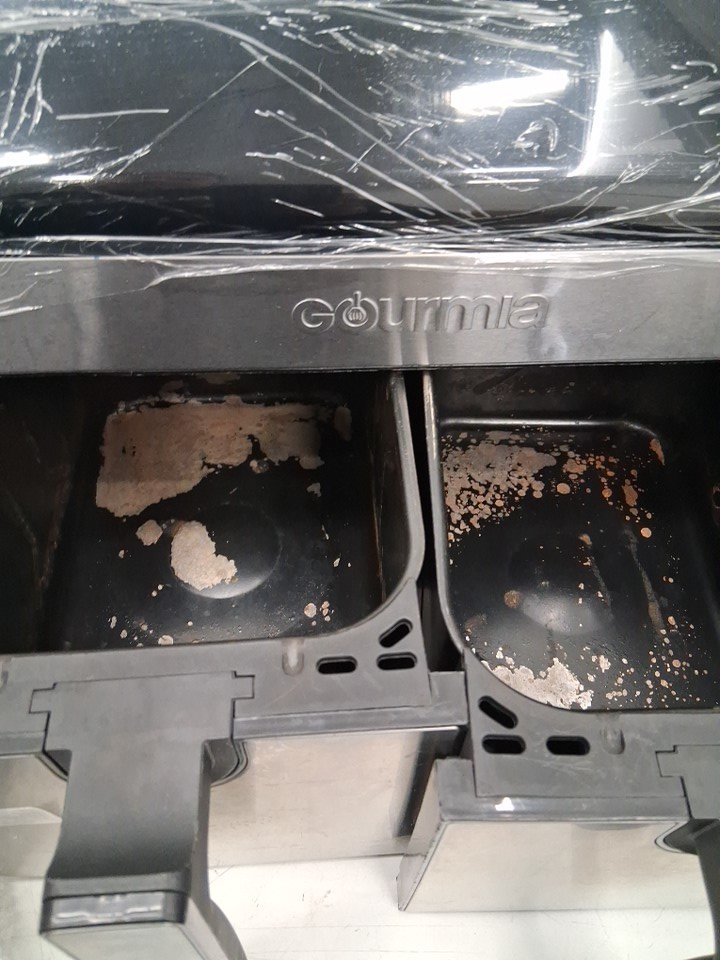 Item has been tested for power only. Please note that both basket interiors show significant wear, with noticeable stripping of the non-stick coating (see photos for reference). All other parts seem to be relatively new.
