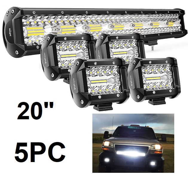 5PC Triple Row Flood Spot Combo Led Light Bar - UNIVERSAL FIT - 20" - BLACK