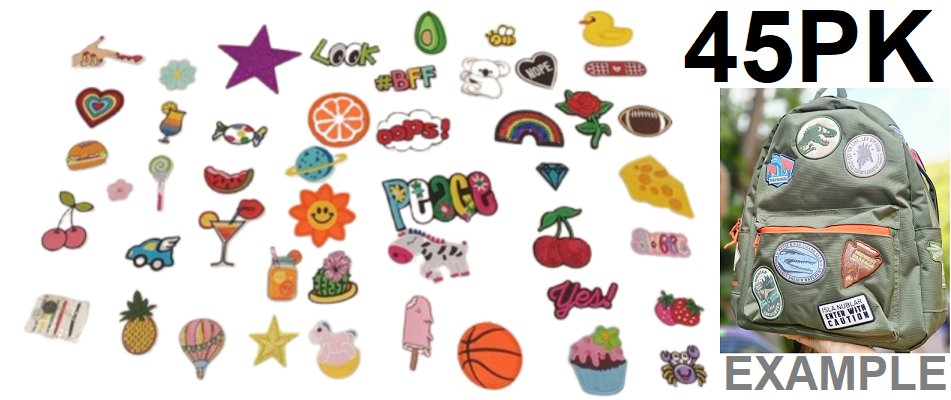 45PK assorted embordered patches - multi-colour