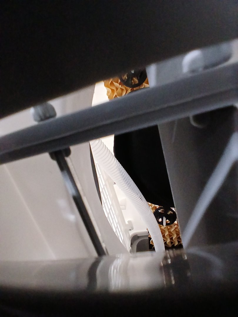 when turned on the fan hits the water hose on the inside, hose seems to be moved from original position should be accessible through the back panel