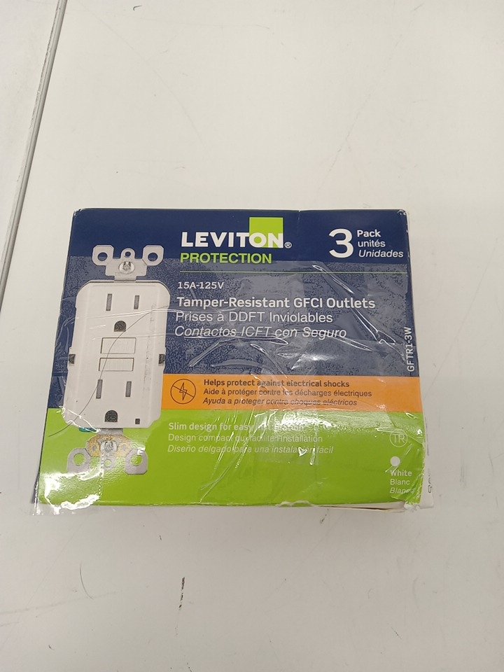 3PK LEVITON TAMPER-resistant self test gfci outlets with led indicator - 4.2" x 10.6" - 15amp - white (model: gftr1-3w)