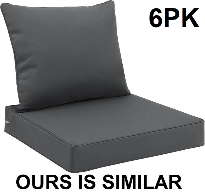 6PK REPLACEMENT outdoor water resistant patio chair SEAT cushions - 25" - BLACK