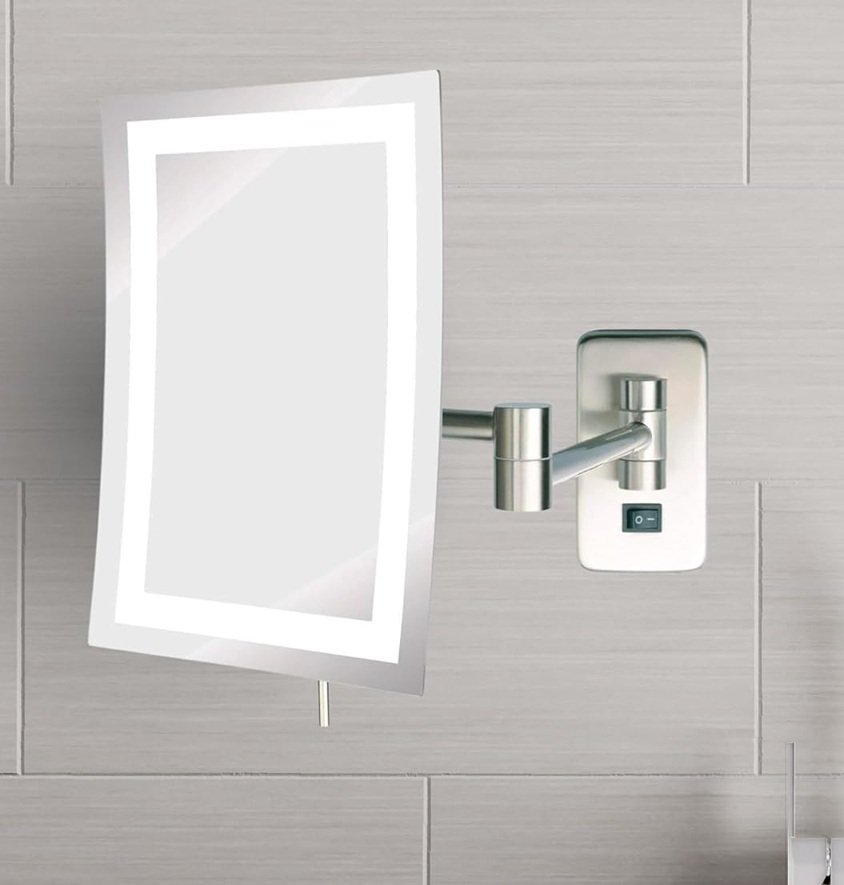 Jerdon Wall Mount Rectangular Direct Wire led Makeup Mirror with 5x magnification- 6.5" x 9" - nickel finish(model: JRT710NLD)