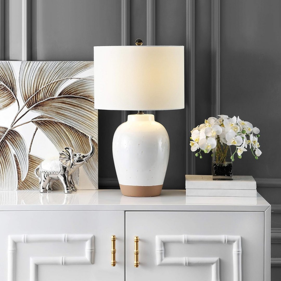 Safavieh Lighting Collection Portcia Speckled Ivory Glaze - WHITE (MODEL: TBL4242A)