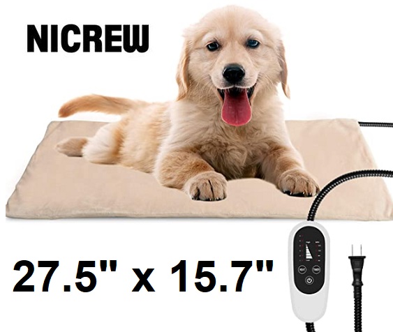 NICREW ADJUSTABLE TEMPERATURE INDOOR PET DOG/CAT HEATING PAD WITH REMOTE - 27.5" x 15.7" - NATURAL