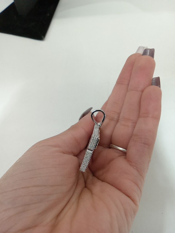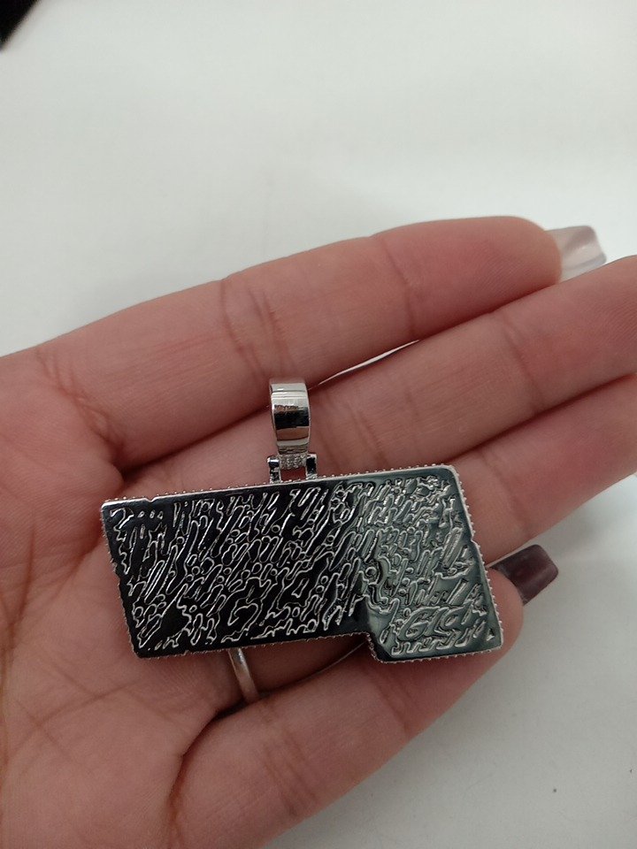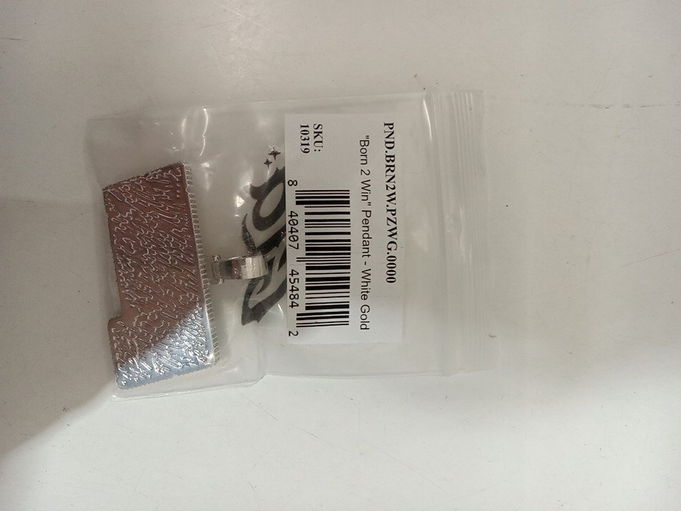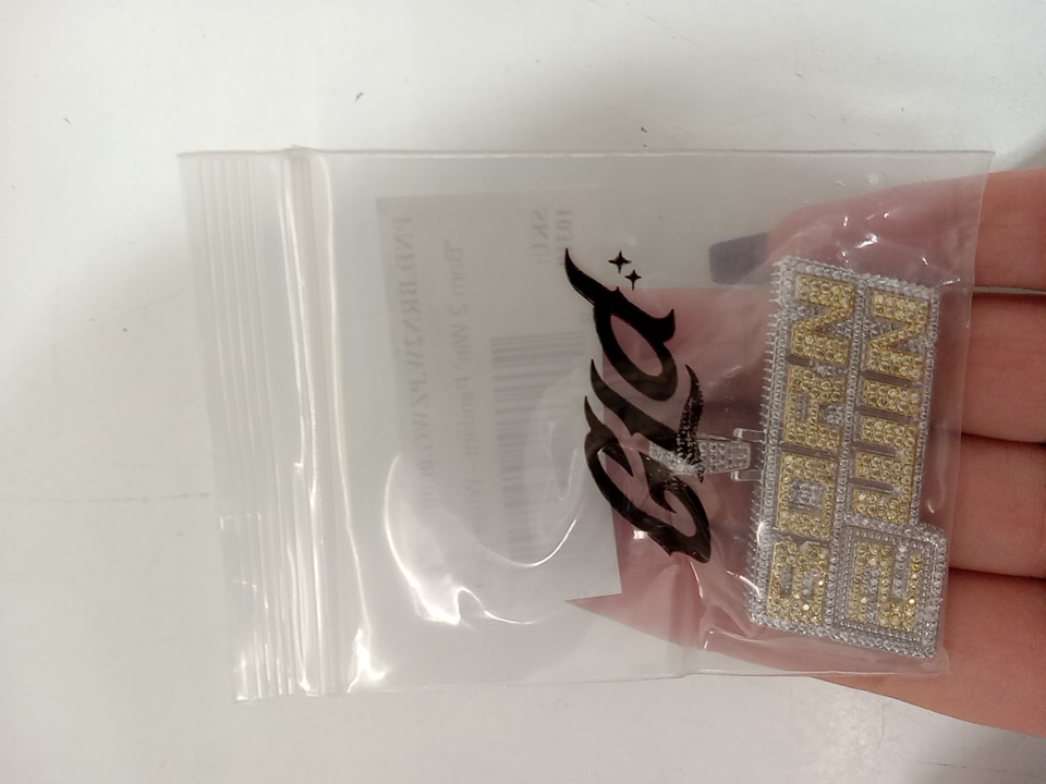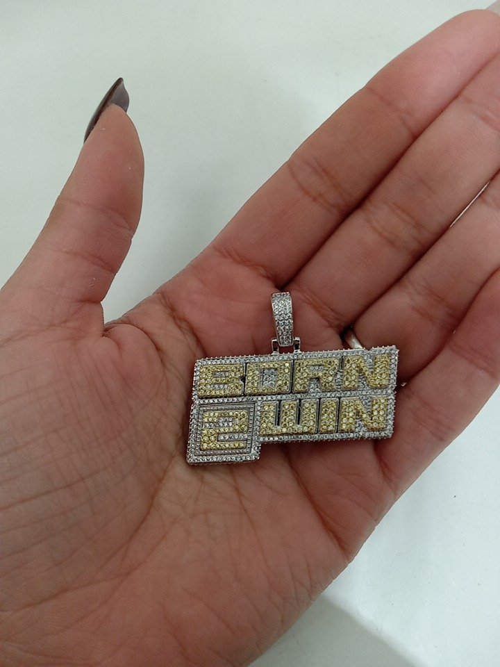 gld born 2 win pendant - 1 3/4" x 1 1/4" - 14k white/yellow gold plate with cubic zirconia.
