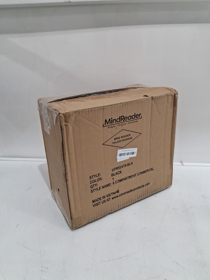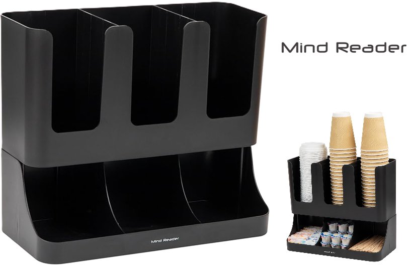 Mindreader "flume" 6 Compartment Condiment and Cups Organizer - 13.5" x 4.3" x 12" - Black (model: ‎UPRIGHT6-BLK)