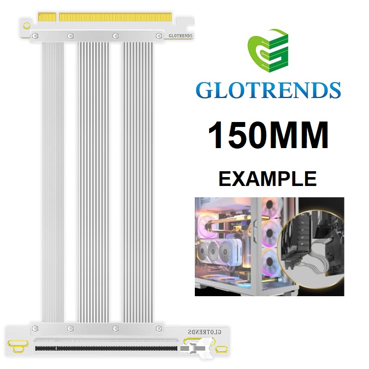 Glotrends 150mm PCIe 5.0 Riser Cable for Vertical GPU Mount - White