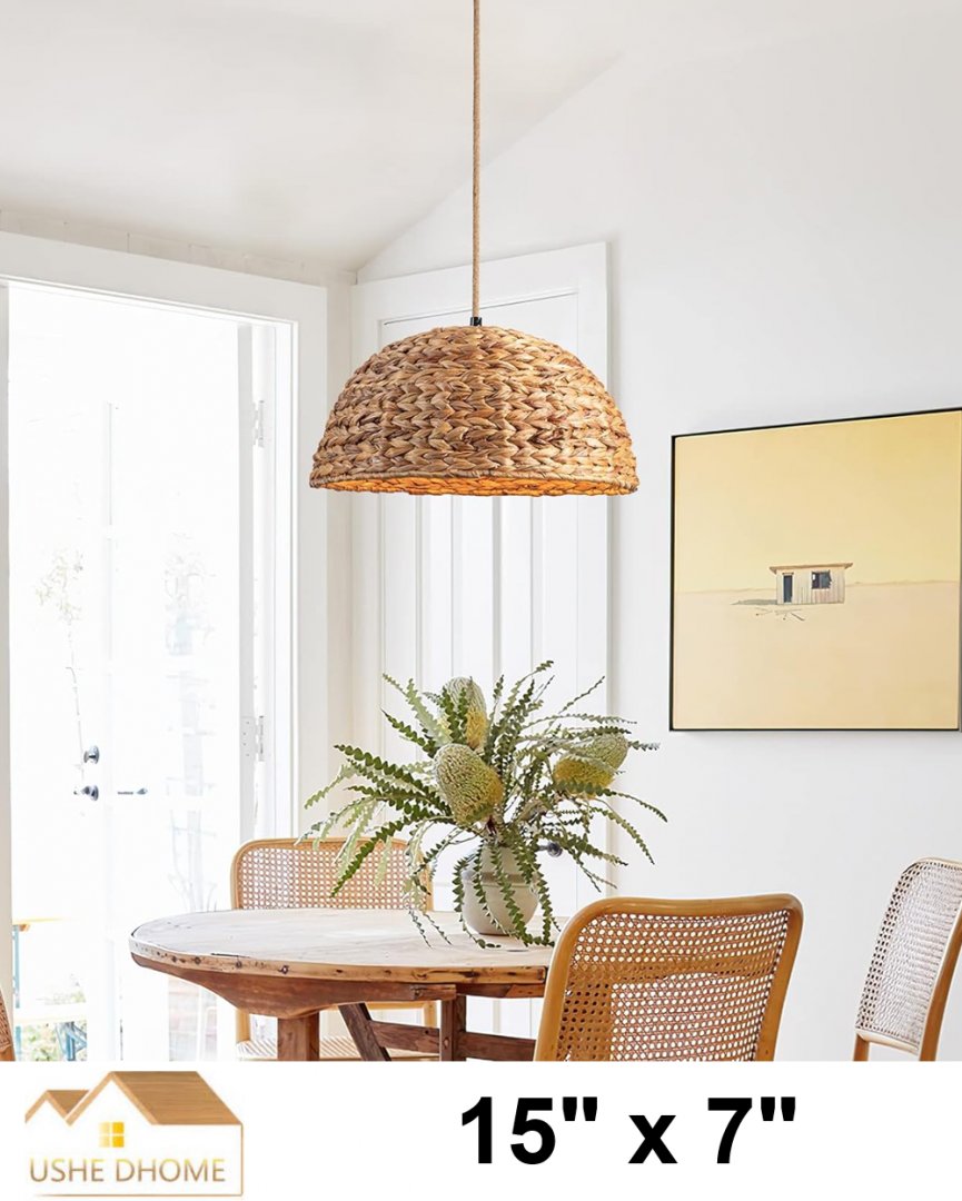UShe DHome Woven farmhouse dome pendant light - 15" x 7"