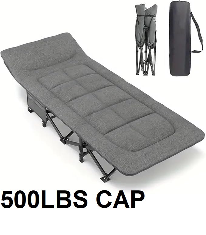 LIVEARTY PORTABLE FOLDING CAMPING COT with cushion pad - 500lbs capacity - navy/grey (MODEL: 700-063)