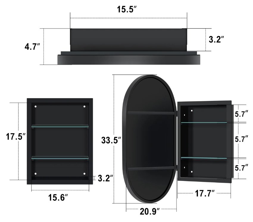 ebern designs laelani Recessed Framed Medicine Cabinet With Shelves - 21" x 34" - black (model: 10fzxjmc24002-85)