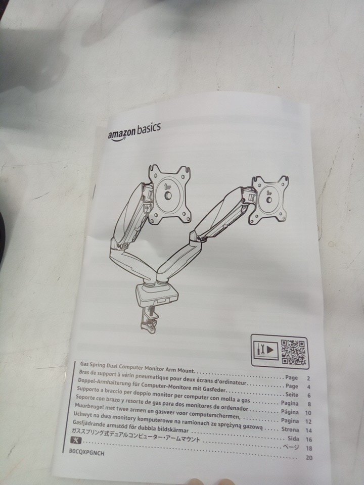Amazon Basics Gas Spring Dual Computer Monitor Arm Mount - holds up to 27" - black