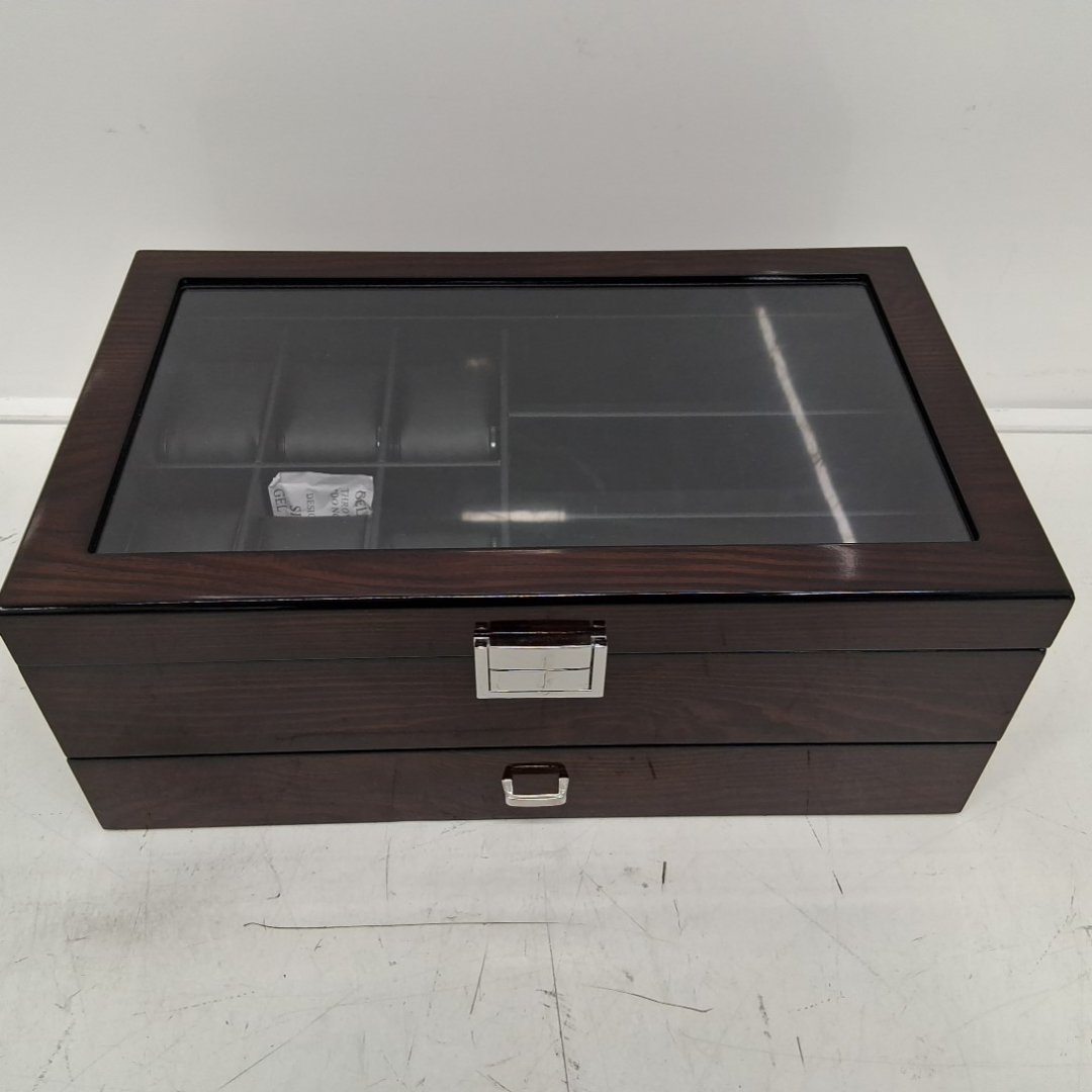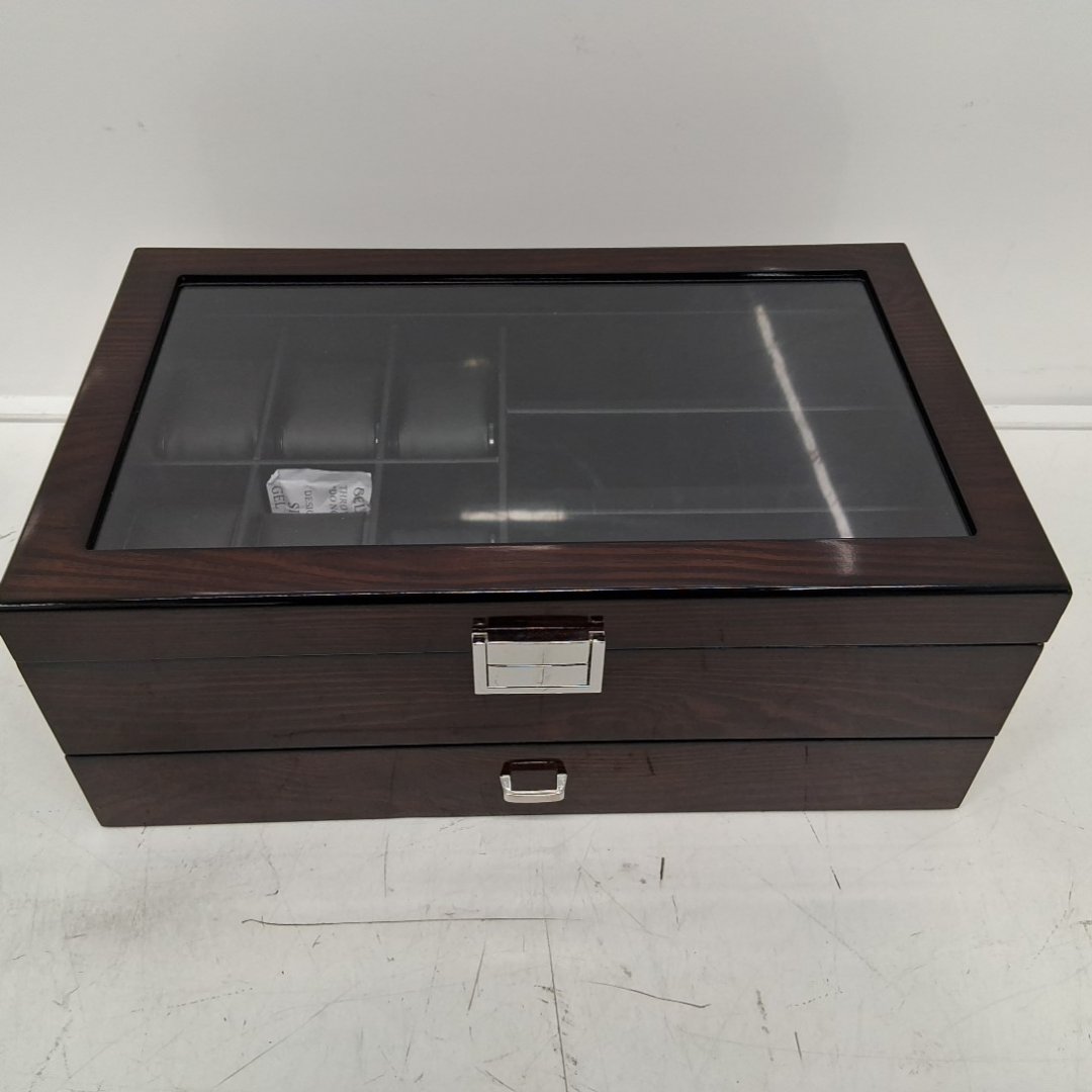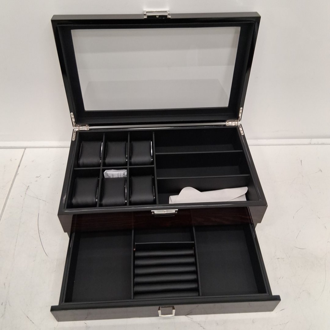 BEWISHOME LUXURY WATCH ORGANIZER/display case WITH JEWELRY DRAWER - brown/black (model: SSH32Y)